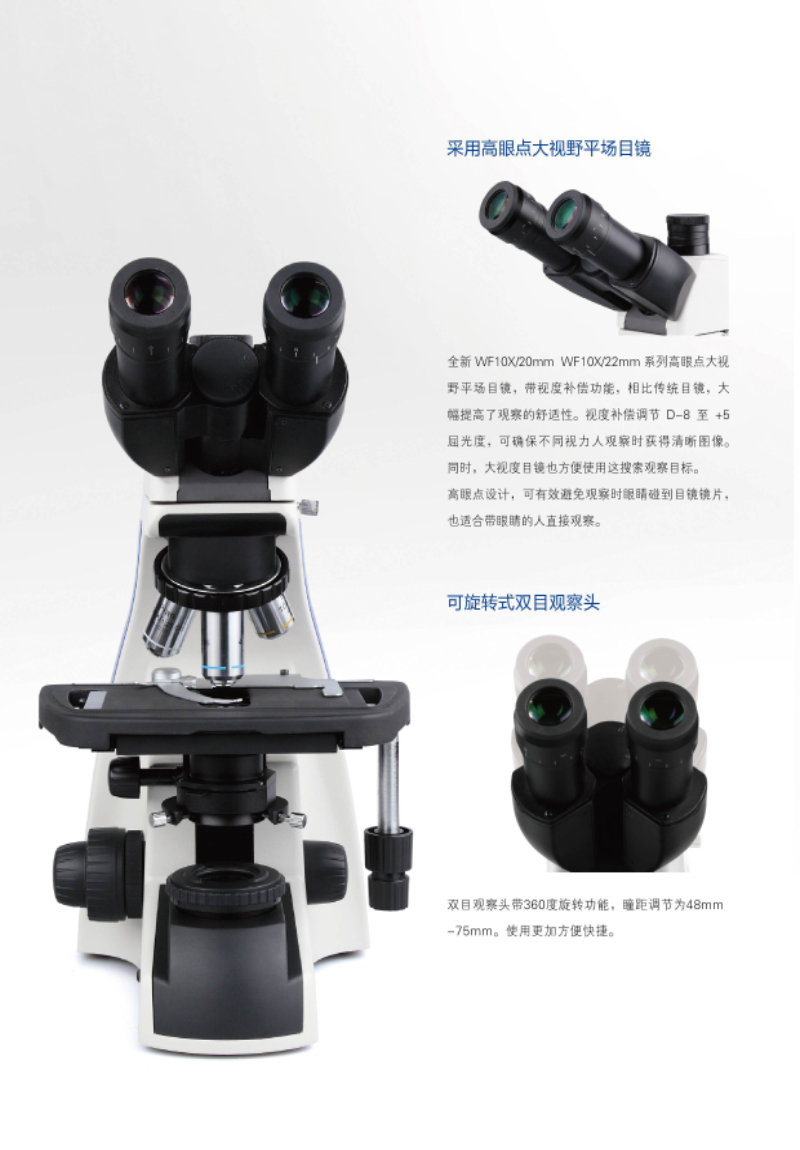 标准配置的高眼点设计的WF10X/22mm目镜,双目视度可调,使双目观察更加容易,还可安装测量和计算用的分划板。另外,目镜筒上的卡槽设计可将目镜锁紧定位,避免掉出,方便学生操作。